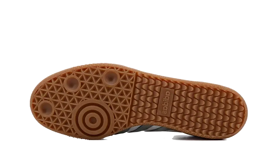 The adidas Samba OG Cloud White Silver Green features a clean cloud white nylon base, grey suede mudguard and bold...
